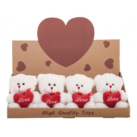 ANIMALES DE PELUCHE CON CORAZÓN ROJO 10CM. CAJA 12 UNIDADES