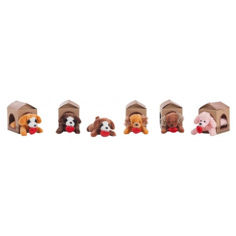 PERRITOS CON CORAZON 16 CM C/ CASA DE CARTON 6 SURT.
