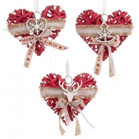 COLGANTE CORAZON RATTAN ROJO 15 X 15 CM. MIN 12